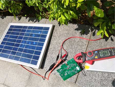 使用9V太阳能电池板,支持MPPT的单节锂电池的太阳能充电系统,ETA6015将MPPT设定在8.6V,如下实现了MPPT功能: